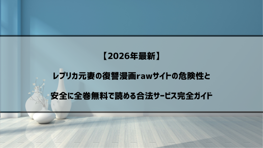 「レプリカ 元妻の復讐」をrawサイトで読むのは危険!正規サービスで安全に楽しもう 「レプリカ 元妻の復讐をrawで無料で読みたいけど、どこで手に入るかわからない」 「違法サイトは危険と聞くけど、お金をかけずに最新話を読む方法はないの?」 「話題の... -