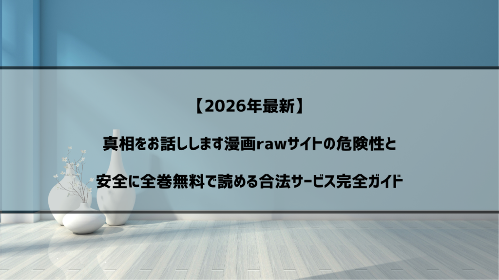 「彼岸島をタダで読みたいけど、漫画rawサイトって本当に安全なの?」 「違法サイトを使わずに無料で読む方法はないの?」 「どの電子書籍ストアが一番お得なのかわからない」 そんな悩みを抱えていませんか? 実は、漫画rawサイトの利用は想像以上に危険... -