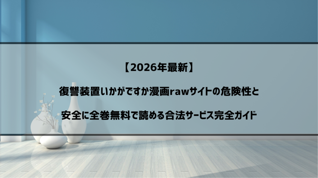 話題の漫画「復讐装置いかがですか」を無料で読みたいけれど、漫画rawサイトの安全性に不安を感じていませんか? 違法サイトでウイルス感染や個人情報流出のリスクを背負ってまで読む価値があるのか悩んでいませんか? そもそもこの作品がどれほど面白いの... -