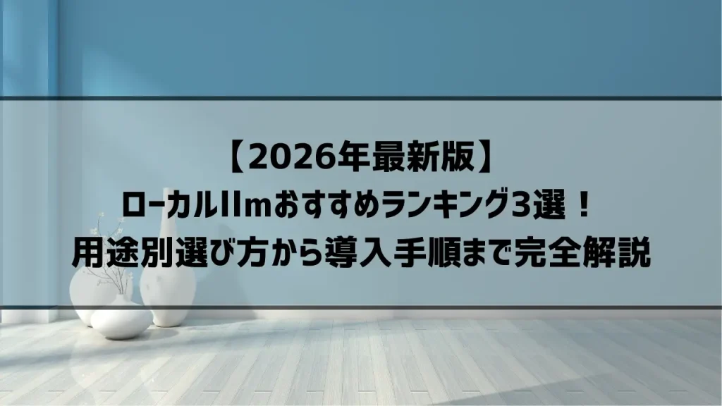 【2026年最新版】ローカルllmおすすめランキング3選!用途別選び方から導入手順まで完全解説