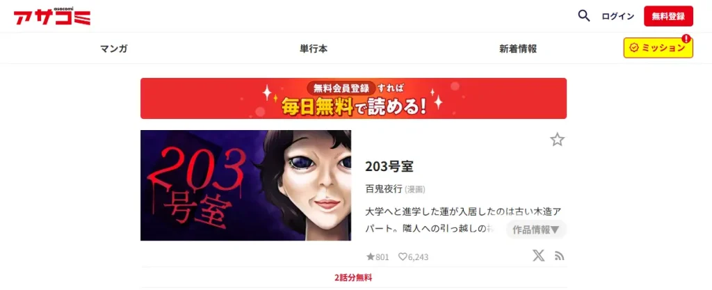 百鬼夜行先生の話題のホラー漫画「203号室」をrawサイトで読もうと考えていませんか?
