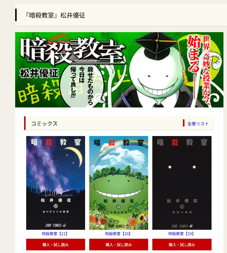 暗殺教室は集英社の作品であるため、集英社が運営・提携する公式漫画配信アプリでの配信が基本となります。