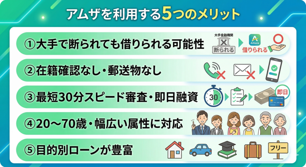 アムザは審査が比較的柔軟で、大手では対応困難なケースでも融資を受けられる可能性があります。